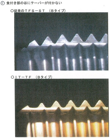 - ピッチ誤差・角度誤差が減少し、タップの耐久力が向上し、めねじの品質も向上。