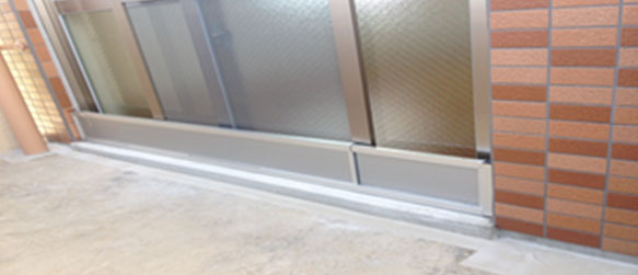 本意匠は、台風時にサッシの下枠内に侵入した雨水が吹き上がって室内に入り込むのを防ぐ吹上防止板である。