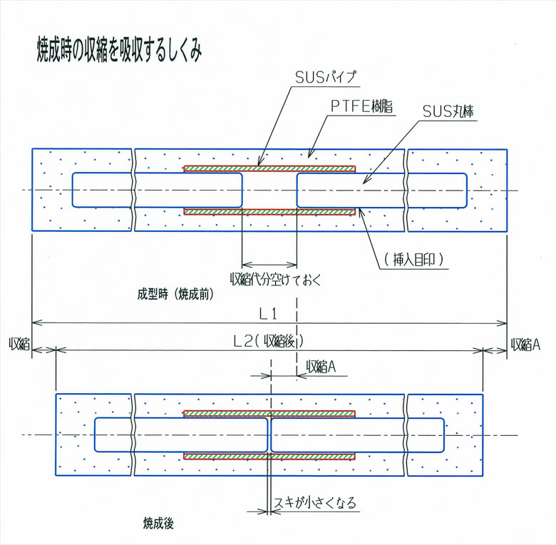 PTFEは、耐熱、耐薬品性においては最も優れた材料であるが、その他のスーパーエンジニアリングプラスチックと比較して剛性が劣るため、高剛性化が望まれていた。PTFEは、その他スーパーエンジニアリングプラスチックと異なり、溶融粘度が極めて高く、一般の押出、射出などの成形方法が適用できない。このため粉末状のPTFEを常温で予備成形した後、電気炉にて加熱し粒子を焼結するが、収縮率が大きく補強材を挿入すると残留応力が生じ、その結果PTFEが破断したり補強材が変形するといった問題が発生した。