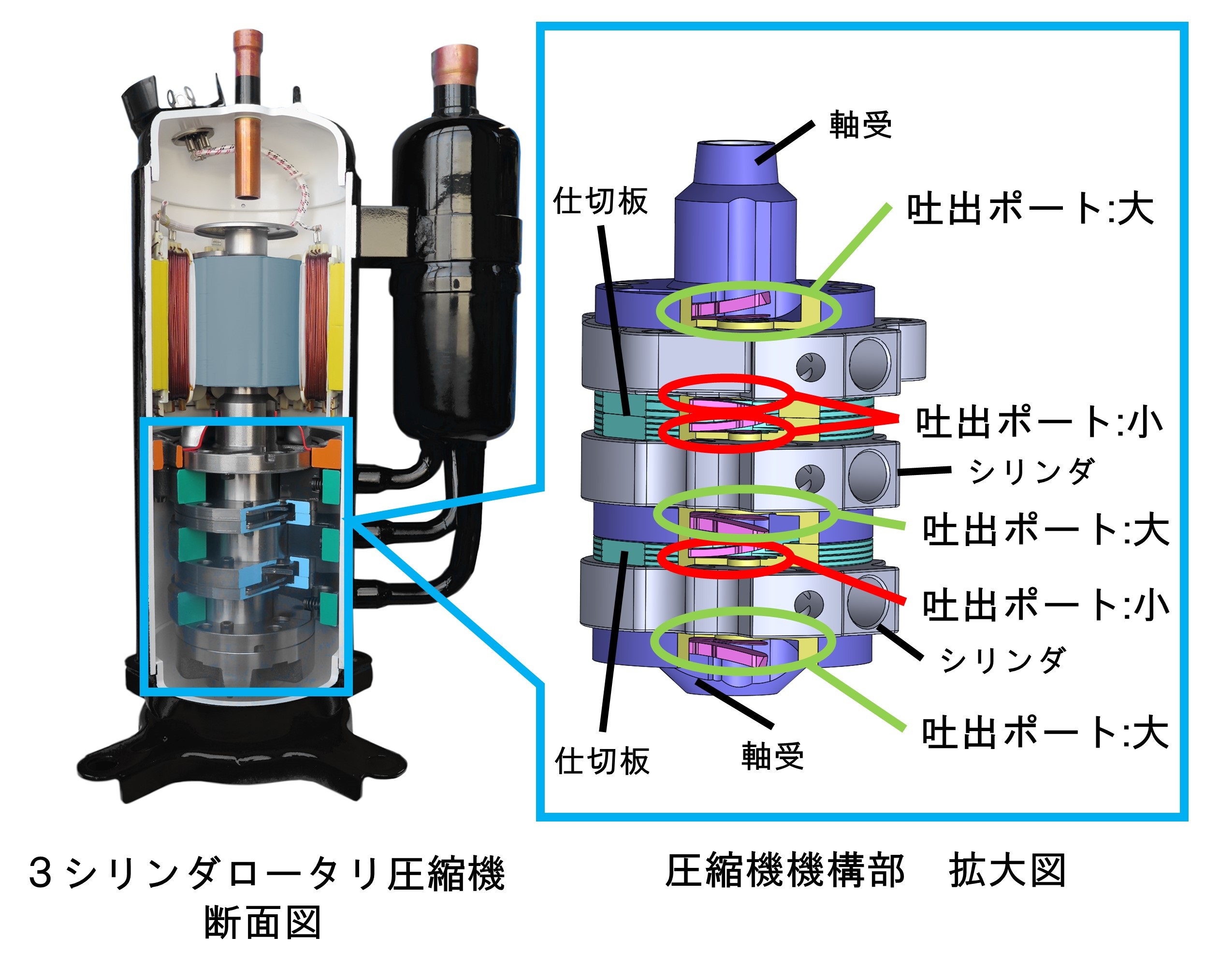 多気筒ロータリ圧縮機の吐出ポート構造(特許第6022247号)