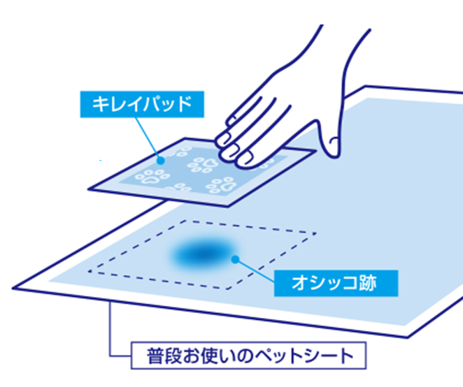 本発明は、ペットが一度排泄した場所の尿跡を嫌い、ペット用排泄シートの外で粗相してしまう問題を解決するための部分補修用小型ペットシートである。排泄シートの汚れた箇所にだけ重ねて貼ることで、尿跡を隠し、ペットが違和感を持たずに排泄できるようにして、大きなシートを無駄なく再利用することができる。