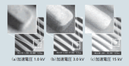 LSIの製造現場における計測に電子顕微鏡を使用するためには、測定試料の半導体素子に帯電防止用の金属蒸着膜を形成する必要をなくすことが必要であった。金属膜を蒸着すると半導体素子が破壊されてしまうためである。また、同じく半導体素子の損傷を防ぐために、半導体表面への電子線によるダメージを極力小さくすることも不可欠である。