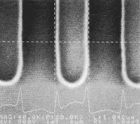 このジレンマを解決するために、1981年に製品化されたFE-SEM「S-800形」の開発製造で培った「低加速電圧で高解像度の画像を得る」技術が応用されたのである。すなわち、低加速電圧で高分解能の観察ができ、観察対象の試料にダメージを与えにくいというFE-SEMの特性を、測長SEMに存分にいかすことができたわけである。