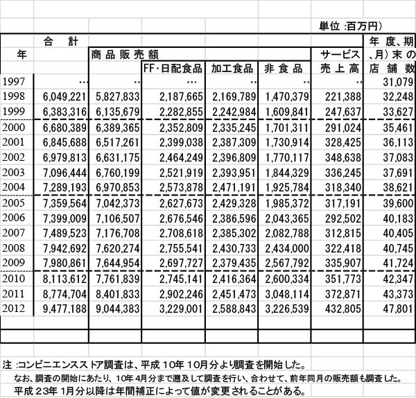 イノベーション100選 トップ10 戦後復興期 高度経済成長期 安定成長期 現代まで 印 刷 高度経済成長期 コンビニエンスストア統計参考文献等イノベーションに至る経緯概要統計表1 コンビニエンスストア販売額等 出典:経済産業省 商業動態統計調査 統計参考文献等イノベーションに至る経緯概要