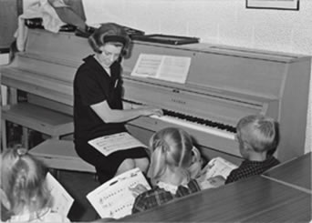 また、ヤマハ音楽教室は、当時としては珍しいグループレッスン形式の授業を展開した。幼い子どもたちが共に学ぶ空間を作ったことによって、生徒や親同士のコミュニケーションも生まれた。ヤマハ音楽教室のグループレッスンの出現は、音楽の学習は難解なものであるという考え方がいまだに広く共有されていた時代において、音楽をより身近な存在と感じさせる機会となった12。