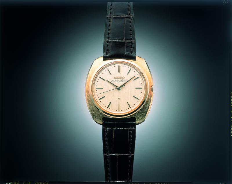 このように、各種構成要素を小型化・省電力化することによってクオーツ式の腕時計は誕生した。1969年12月にセイコーは世界初のクオーツ腕時計「セイコー クオーツ アストロン35SQ」を発売する。価格は45万円、ムーブメントの大きさは機械式腕時計よりもわずかに大きい外径30ミリ、厚さ5.3ミリであった。当時の乗用車より高い時計であった。