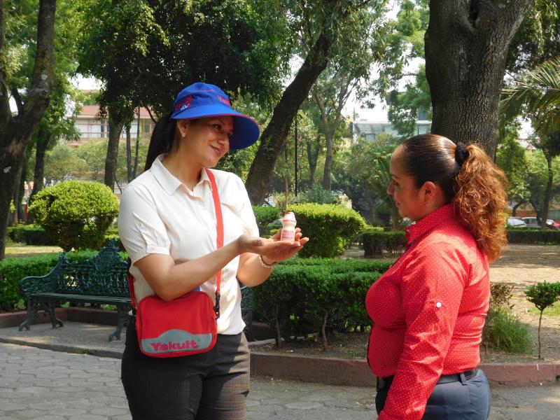 ヤクルトレディは2016年3月末現在では、全国に約2500カ所あるセンター(営業拠点)を拠点に、約3万6500人が活躍し、強固な販売網を築き上げている。ヤクルトレディは、製品の販売だけでなく、一人暮らしの高齢者の安否を確認する「愛の訪問活動」、自治体・警察などと連携して行う「地域の見守り・防犯協力活動」といった社会活動にも取り組んでいる5。