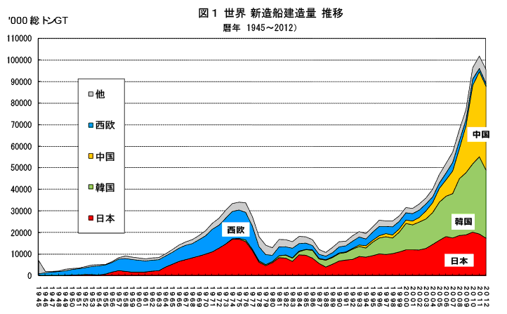 やがて、戦前からの旧造船所設備では船台規模が不十分となり、また、ブロック組立設備の不足もあり、新規設備の追加対応に迫られるようになった。業界大手企業は新しく埋め立てられる臨海工業地帯に、超大型船の建造が可能な船渠を設置する新造船所を新設した。そして1960年代半ばから1970年代初めにかけて超大型タンカーが多数誕生した。1966年には載荷重量20万トン型超大型タンカー(出光丸)が初就航し、10年後の1977年には50万トン型超大型タンカーが建造されている。わずか10年間という短期間に、急激な大型化を可能にしたのは、溶接工法ブロック建造方式技術の蓄積等たゆまぬイノベーションへの努力であった。この時代、超大型船建造を含め、日本の新造船建造量は急増し、世界シェアの50%に達する状況になった。
