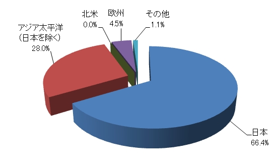 2006年の日系企業による記録型DVDドライブ売上高は4433億円となった18。また、総務省の調査によるとDVDレコーダーの日本企業の世界シェアは高い水準を維持しており、66.3%とされている19。(図2.「DVDレコーダーの世界市場シェア」参照)
