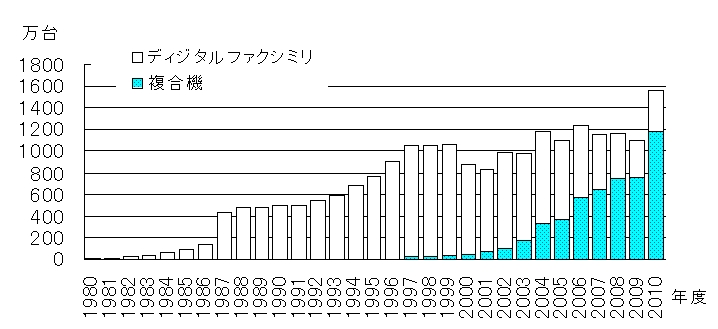 図4からも分かるように、G3ファクシミリは国際標準化成立後30年余り経過した現在も、複合機も含め毎年1000万台以上が出荷生産され、電話にはない新たな記録通信手段として世界で幅広く活躍し続けている。