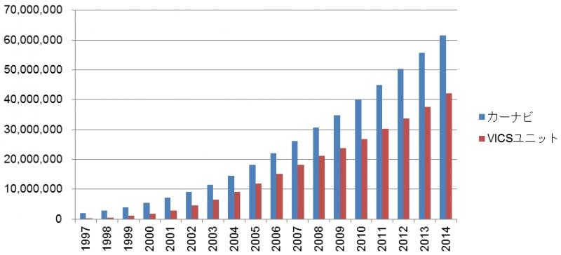 カーナビ普及加速の背景には、1996年以降におけるVICS(Vehicle Information and Communication System)21による情報提供の開始が大きな役割を果たした。これは道路の渋滞情報等をVICS対応カーナビに送信することにより、運転時間の短縮、安全性の向上に役立てようとするもので、システム購入とともに利用が可能になるサービスである(図2にカーナビ、VICSユニット累計出荷台数を示す)。