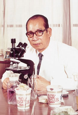 1957年、安藤はインスタントラーメンの開発に着手した。これまで麺食関連の事業経験が無かったため、全くの手探りからのスタートであった。自宅の庭に建てた10平方メートルほどの小屋を研究室として、朝5時から夜中の1時、2時まで研究に没頭した。開発に当たって掲げた目標は5つあった。第一は、美味しくて飽きがこない味にする、第二が家庭の台所に常備できる保存性のあるものにする、第三は調理に手間がかからないものにする、第四は値段を安くする、第五は安全で衛生的なものにするであった。