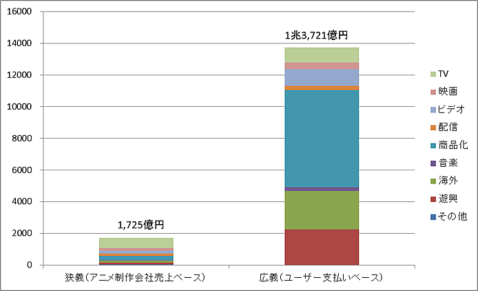 日本では毎年1万点ほどの新刊マンガが発売され、単行本・雑誌を合わせたマンガ市場の規模は近年低下傾向にあるものの3766億円(2012年)に達する1。また、毎年ほぼ200タイトルのテレビアニメが制作されており、アニメ制作会社の収入を基にした狭義のアニメ市場規模は1725億円(2012年)、キャラクターグッズ販売等を含めた広義の市場規模は1兆3721億円と非常に大きな産業となっている(図1)。また、日本で制作されたマンガ・アニメはいわゆる「ジャパニメーション」「クール・ジャパン」として海外でも高い評価を得ており、「Manga」「Anime」という言葉は日本のマンガ・アニメを指す海外でも通じる言葉となっている。